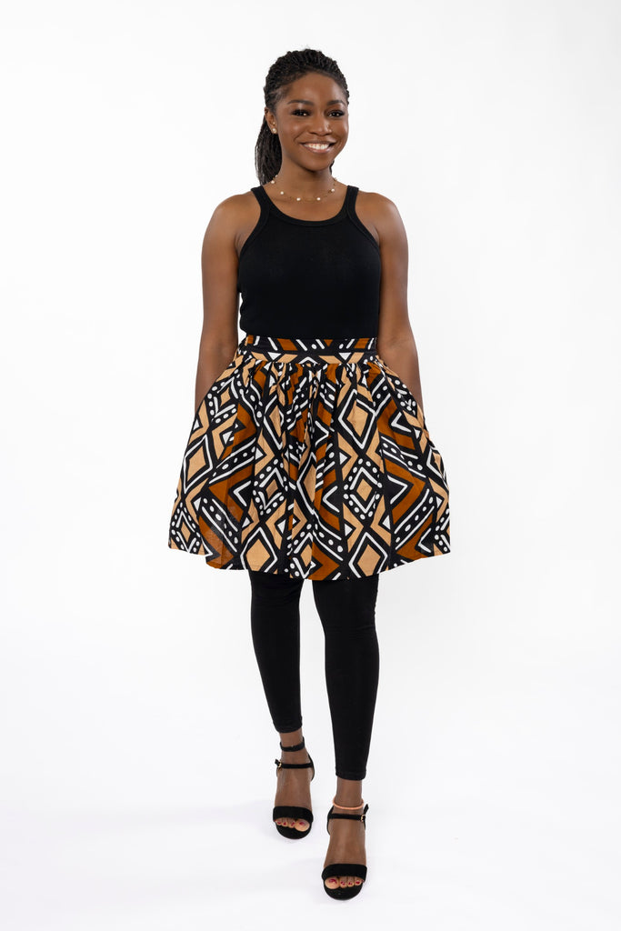 Afrikanischer Print Minirock - Braun Schwarz Bogolan
