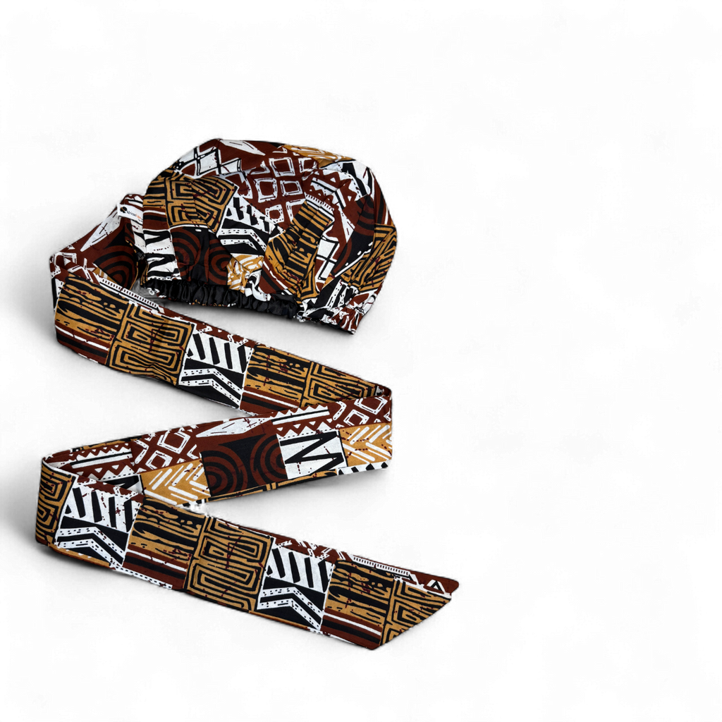 Easy headwrap / einfaches Kopftuch - Satinfutter - Braun Bogolan Mosaik