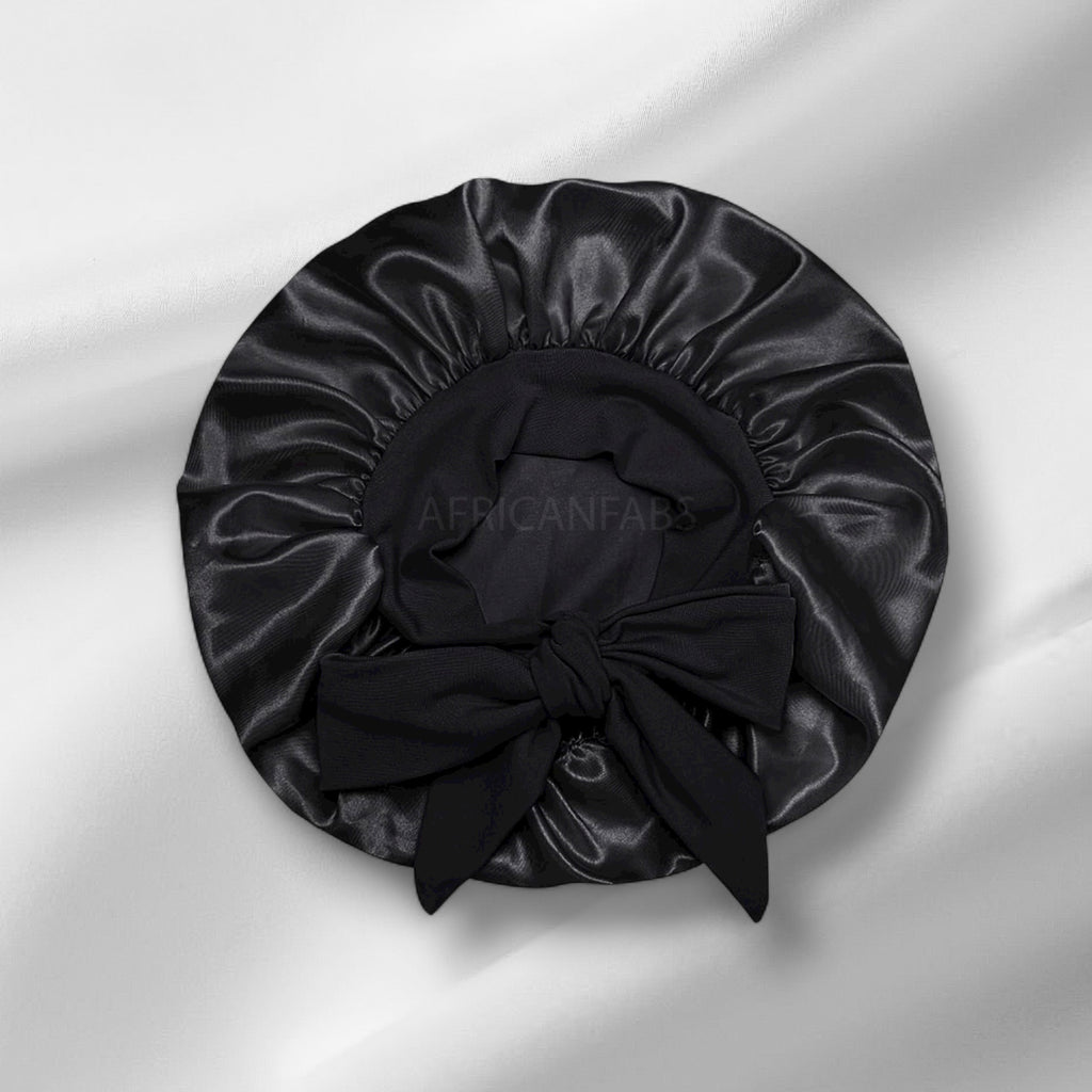 Schwarz Satin-Haube mit Bändern zum Binden (Kindergröße 3–7 Jahre) (Satin-Nachtmütze / Satin bonnet / Schlafhaube / Kinder Hair Bonnet / Satin bonnet)