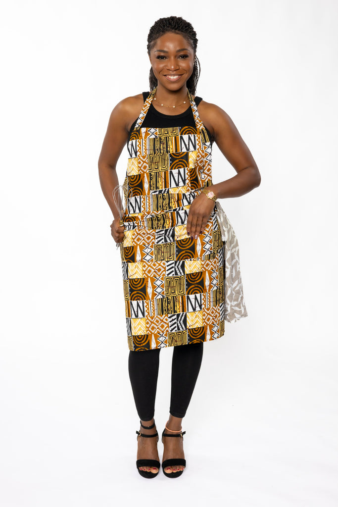 Afrikanischer Print Schürze - Khaki Bogolan Mosaic
