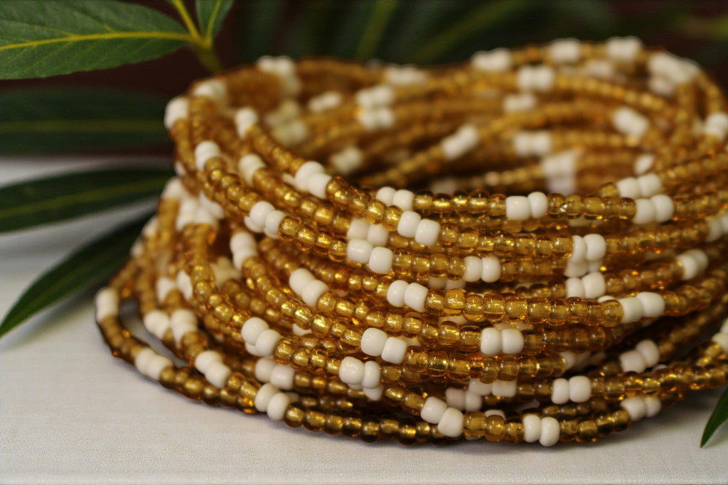 Waist Beads / Afrikanische Taillenkette - JESUOBO - Weiss / gold (elastisch)