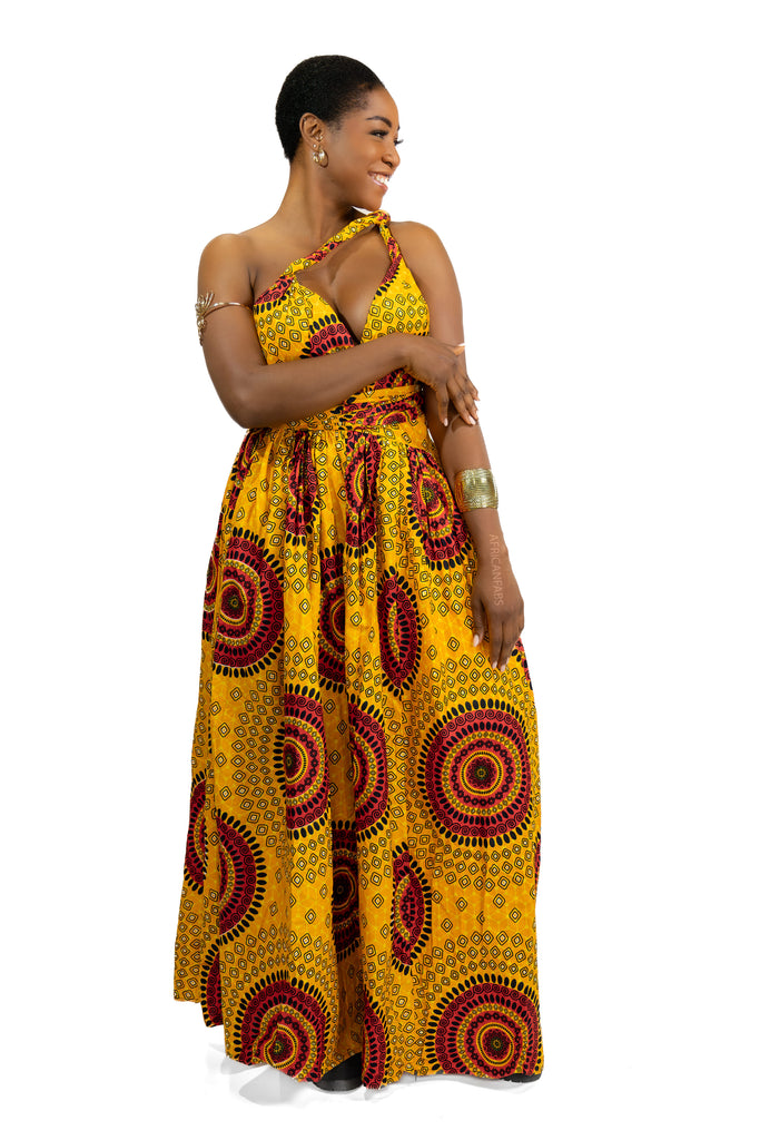 Afrikanischer Print Infinity Multiway Maxikleid Gelborange Dotted Patterns