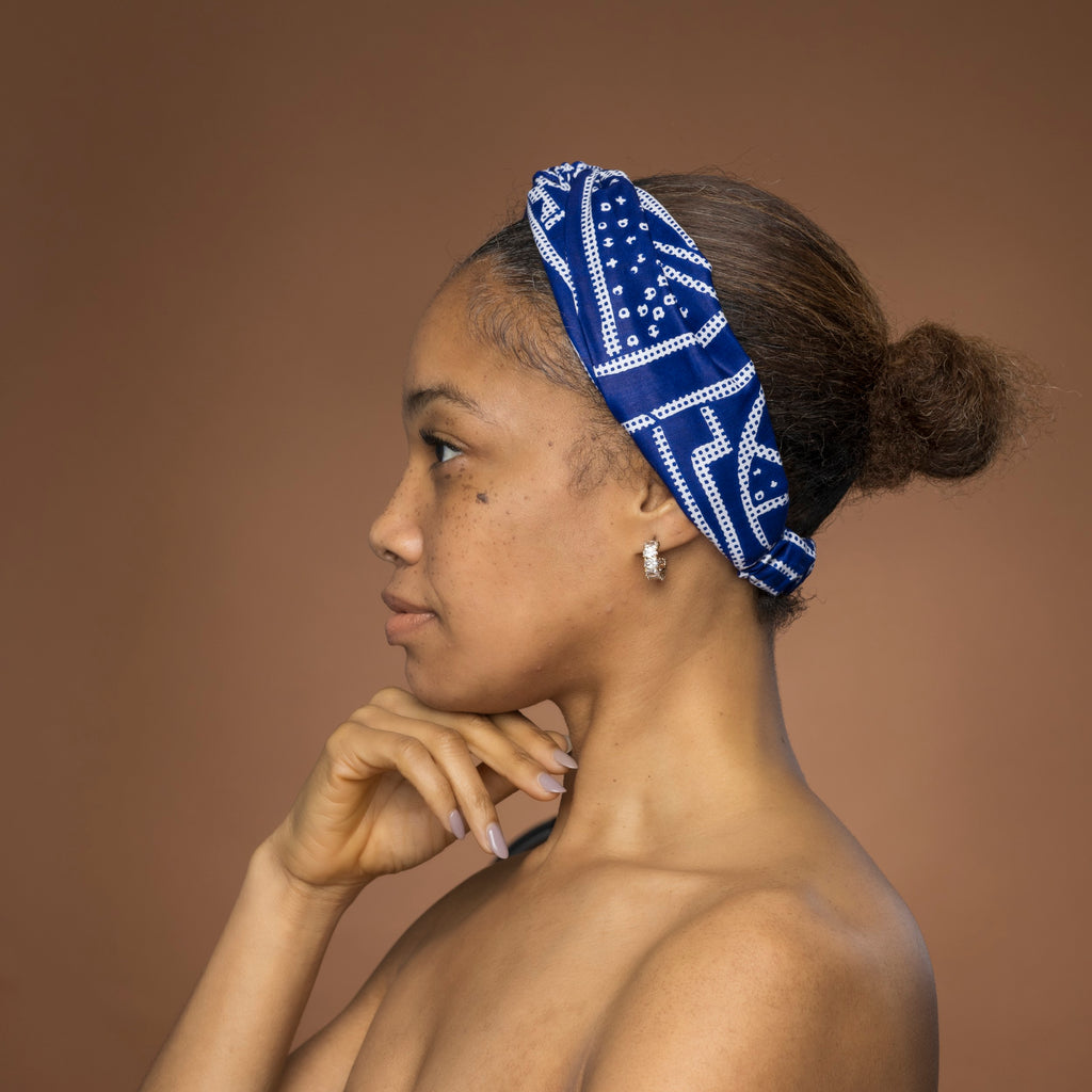 Haarband / Stirnband / Kopfband in Afrikanischer Print - Blau Weiß Ndop Cameroon